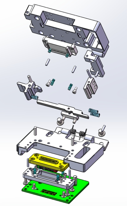 1)載板:用于FPC/PCB BTB連接器的定位,載板與針板之間設(shè)有彈簧可以上下浮動。主要材料類是Torlon/PEEK/PPS等精密絕緣材料。